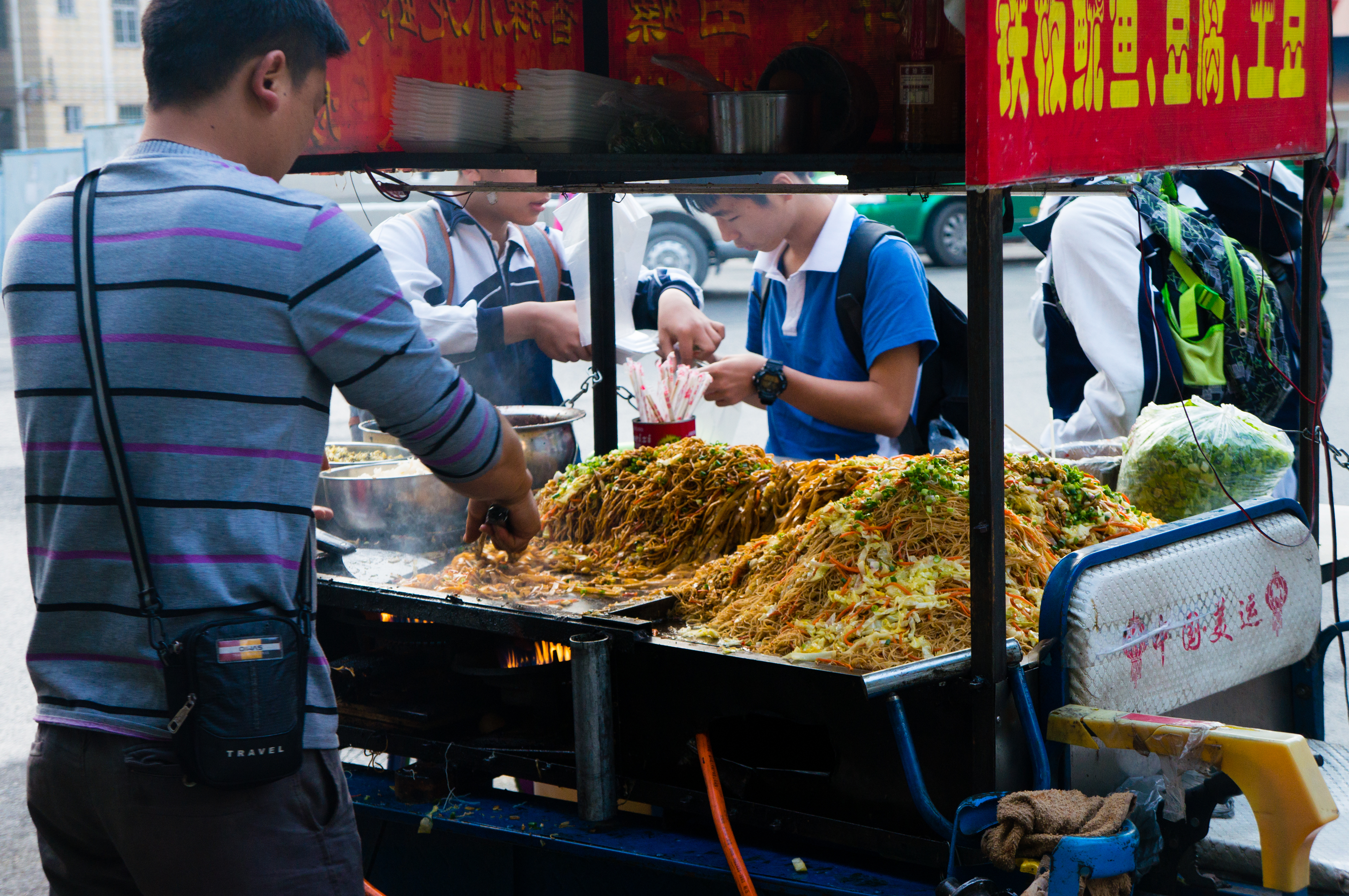 During the colder winter months, this was my absolute favorite thing about walking to work: strolling through clouds of steam rising from the different carts set up on the streets – frying noodles, steaming jiao-zi (JIAO – TSE: dumplings) and bao-zi (BAO – TSE: buns filled with awesome)…basically every incredible Chinese food that you could dream of you could find somewhere in the early morning streets.